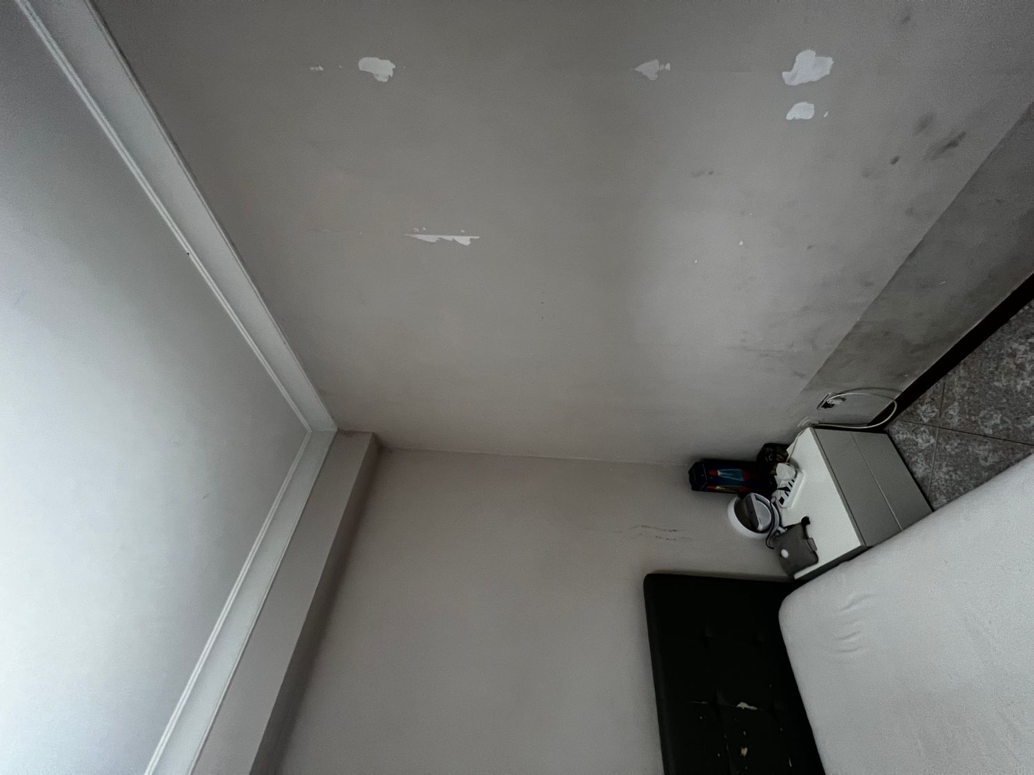 La puerta de entrada se sustituirá por una puerta plegable para aumentar el espacio disponible. Si fuera necesario, también podría colocar la cama en la pared opuesta, utilizando una cama de tamaño francés.