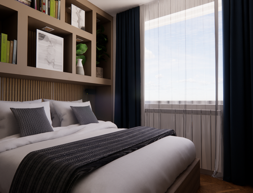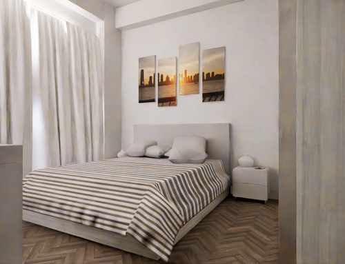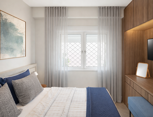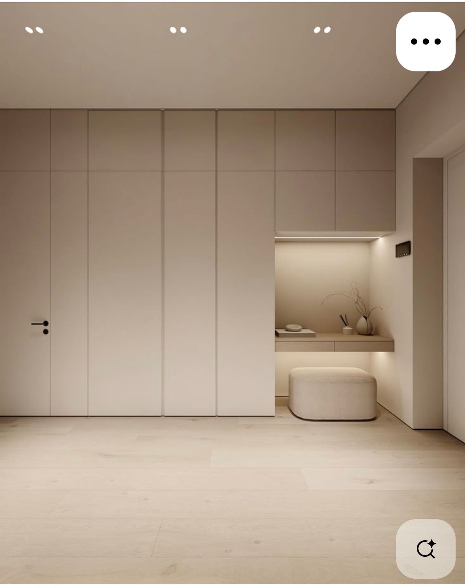 Me gustaría tener un dormitorio moderno con armario y, si es posible, una zona dedicada a la tocador. También quiero tener un televisor en el dormitorio.
