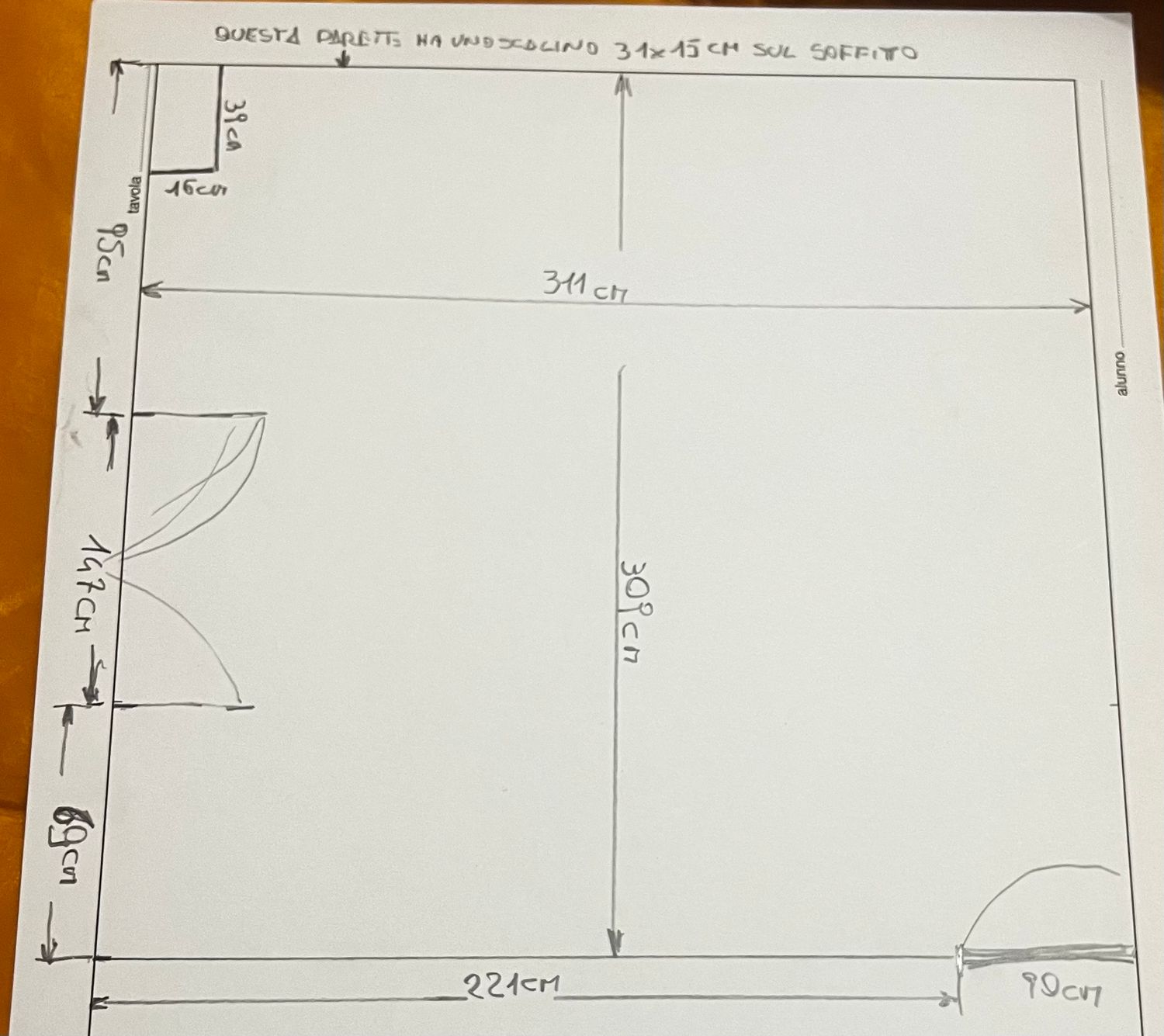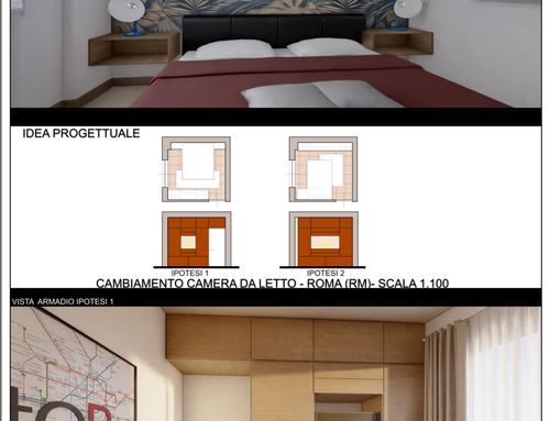 La porta di ingresso sarà sostituita con una porta a libretto per aumentare spazio e se serve potrei anche posizionare il letto matrimoniale nella parete opposta inserendo un letto alla francese . Per me la cosa importante è riuscire ad avere un armadio abbastanza capiente.