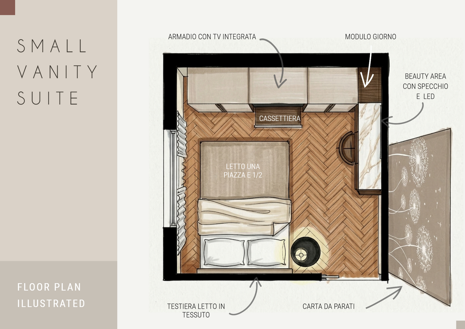 l’obiettivo della mia proposta è stato quello di realizzare una piccola suite da vivere ogni giorno e che regalasse un immediato senso di benessere.