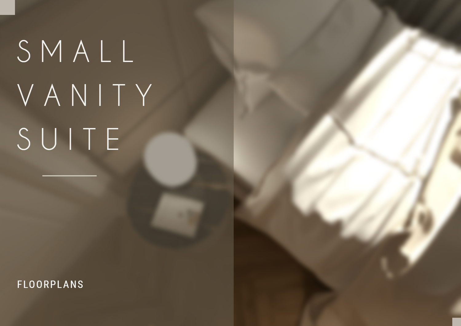 The wall-mounted console and full-height mirror leverage the corner to increase the perception of depth while softening the entrance into the room.
