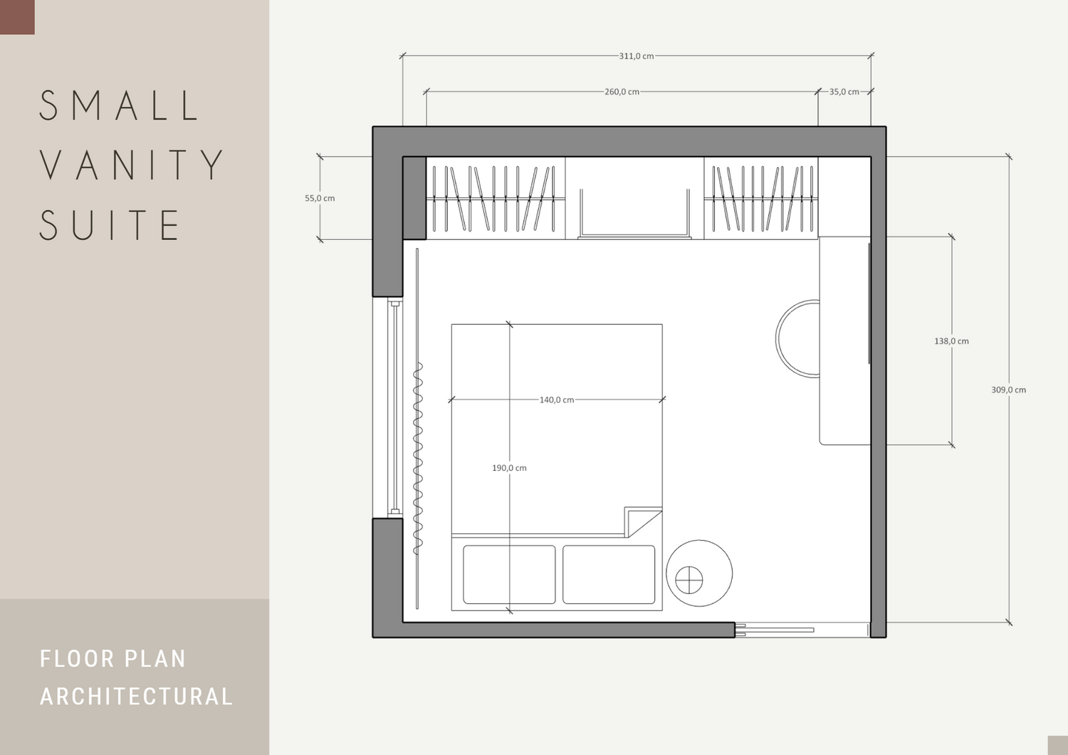 Le dimensioni contenute hanno guidato le scelte progettuali, in primo luogo quella di optare per un letto alla francese privo di giroletto, così da lasciare adeguato spazio di passaggio e mantenere proporzioni armoniose tra gli elementi, scongiurando l’effetto “elefante nella stanza”.