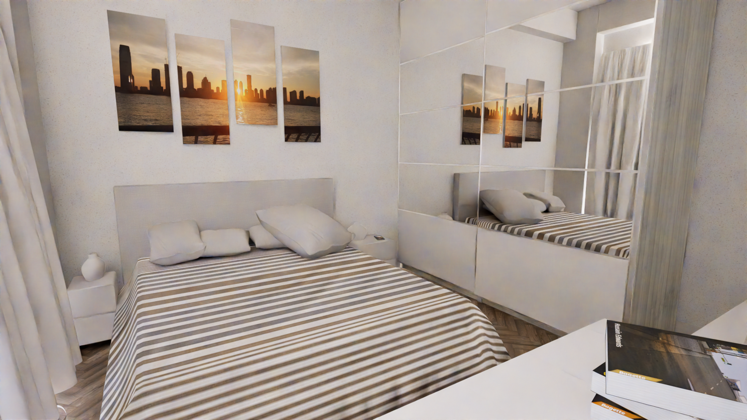 Si consiglia di prevedere lo specchio sulle ante scorrevoli dell'armadio, che permette di ottenere una ulteriore profondità.