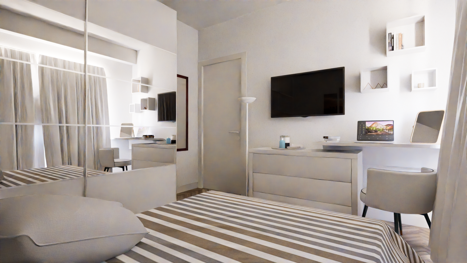 - il televisore è previsto a muro sopra al comò per una comoda visione dal letto.