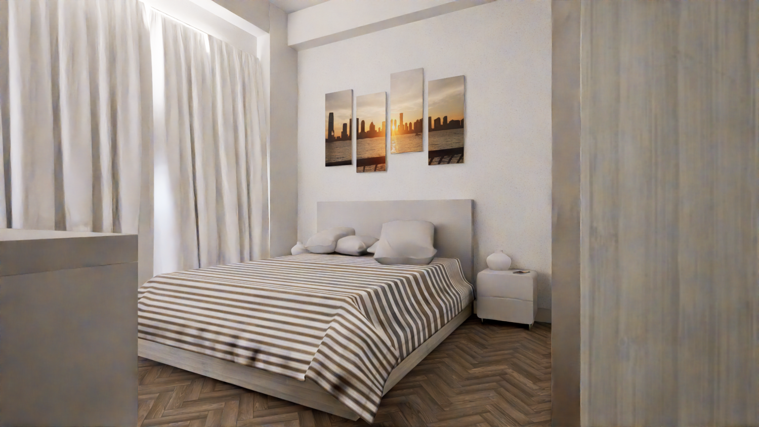 Per la presenza del pilastro tra le pareti della finestra e del letto, si consiglia una delle seguenti ipotesi: