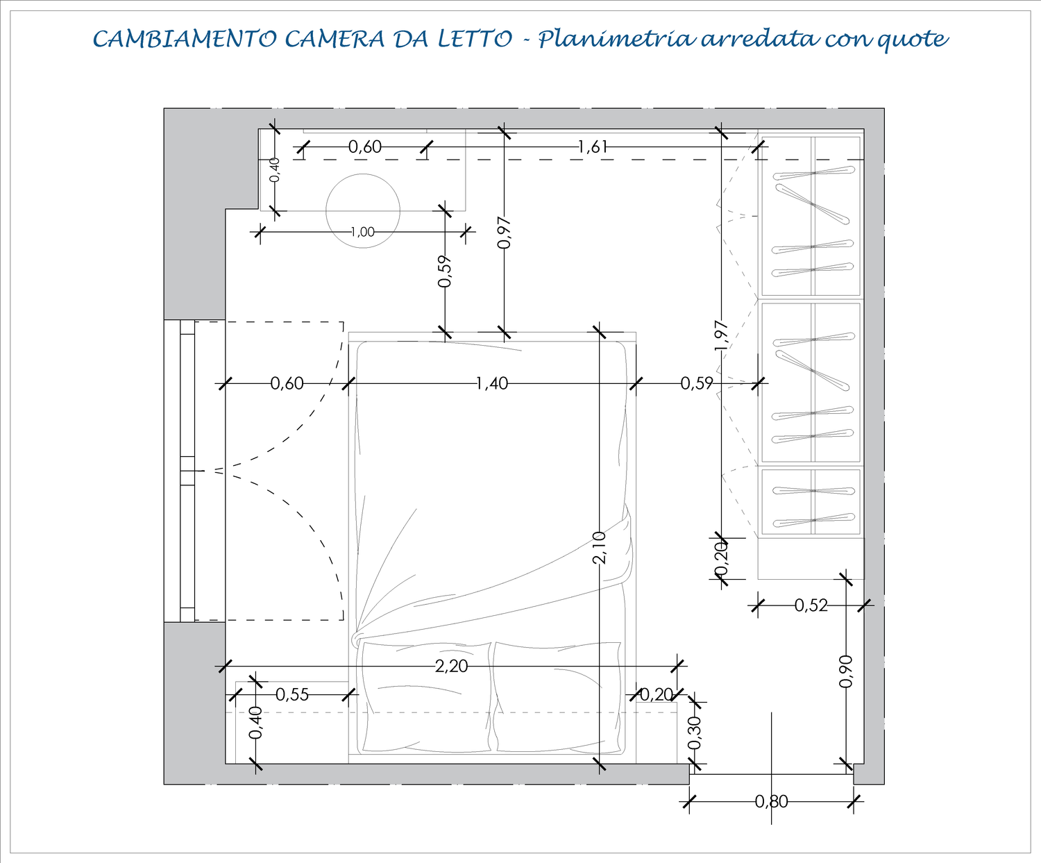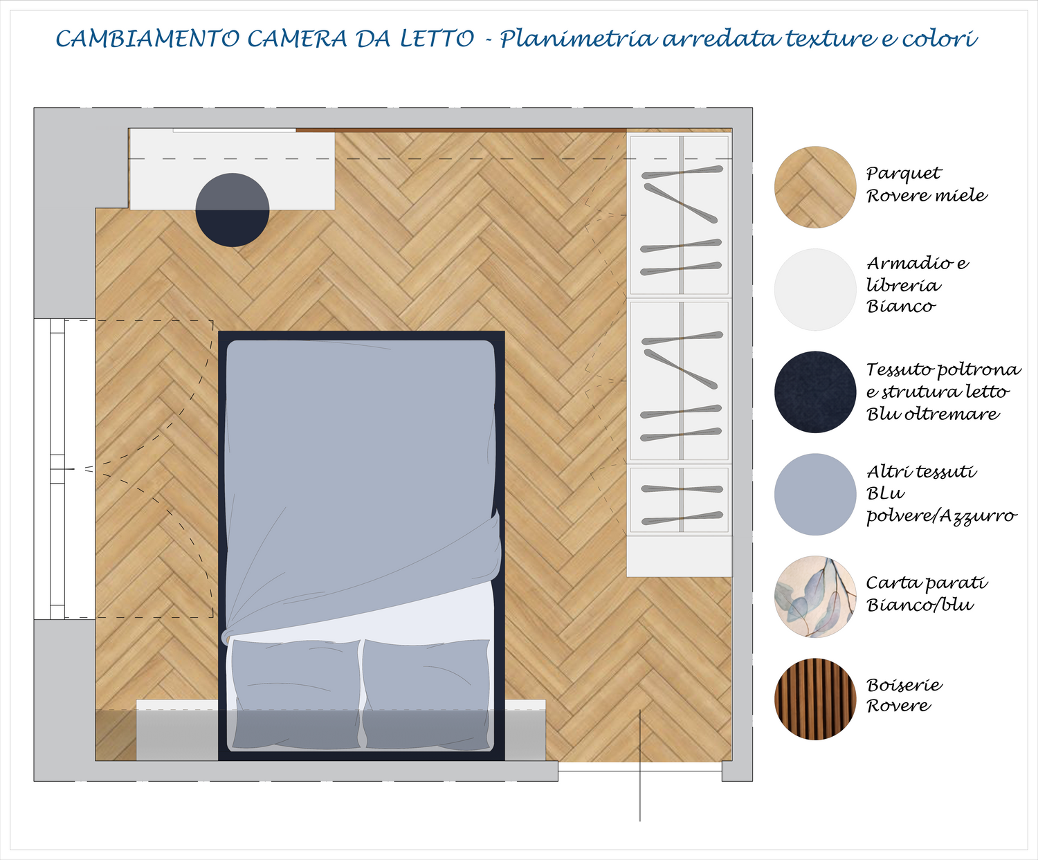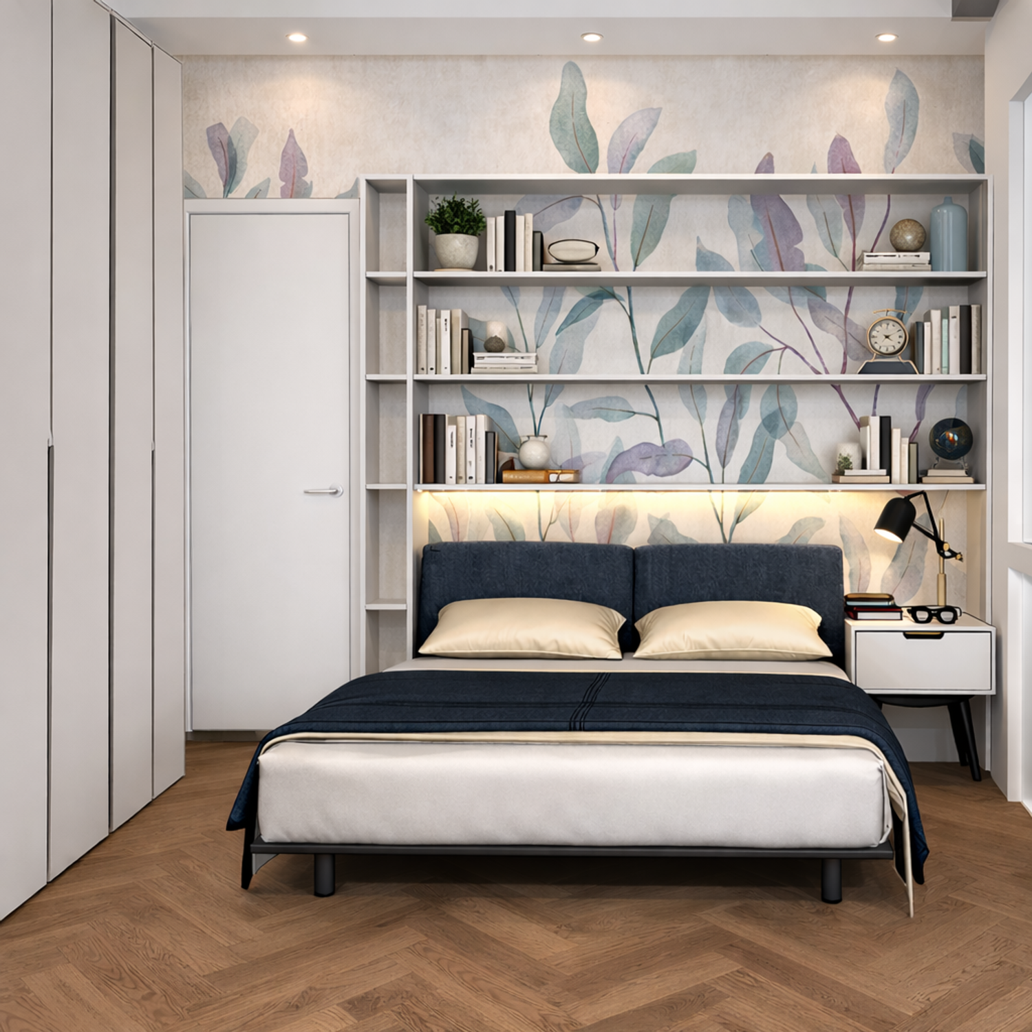 Il progetto prevede la realizzazione di una camera da letto contemporanea pensata per coniugare estetica, funzionalitĂ e comfort in uno spazio compatto ma altamente curato nei dettagli.