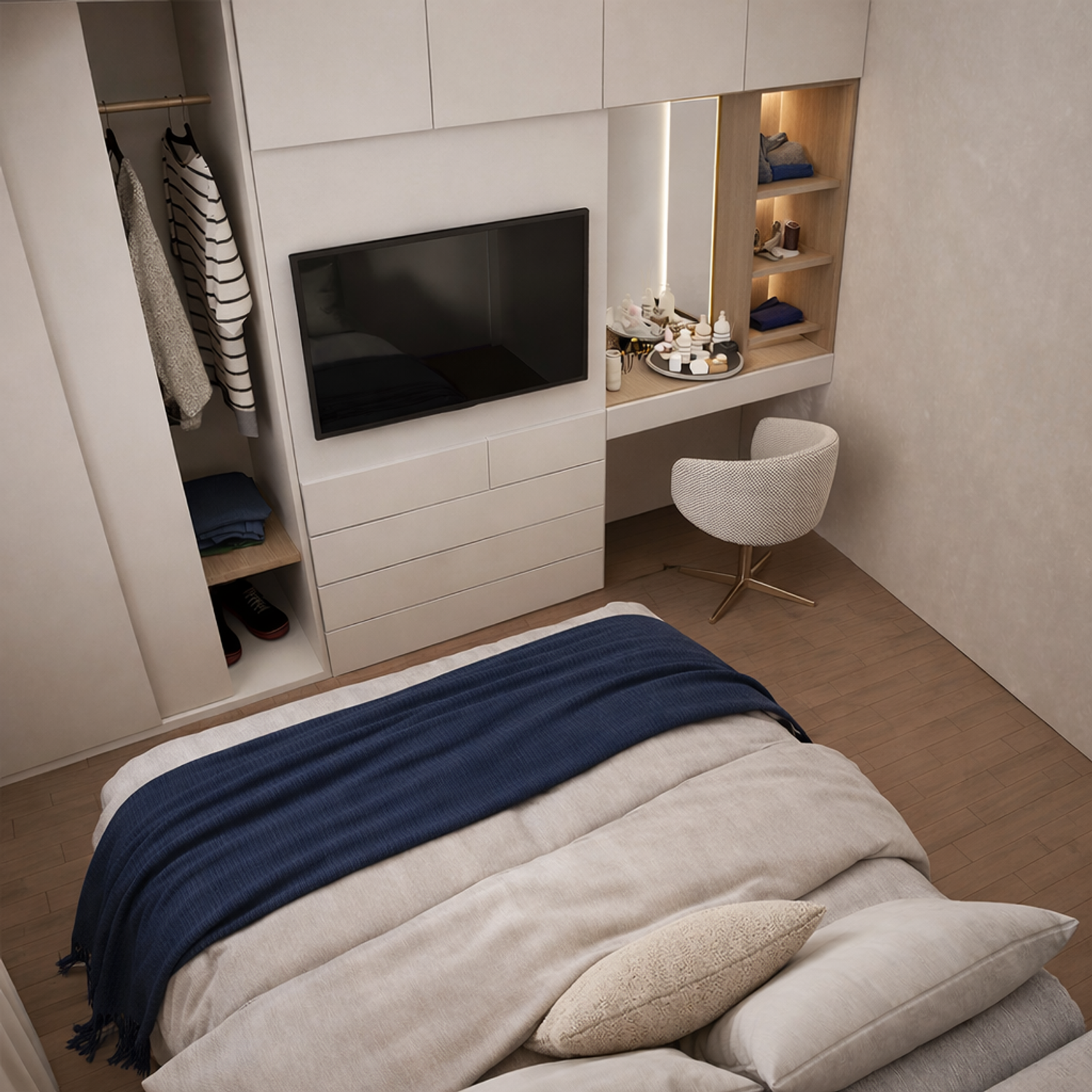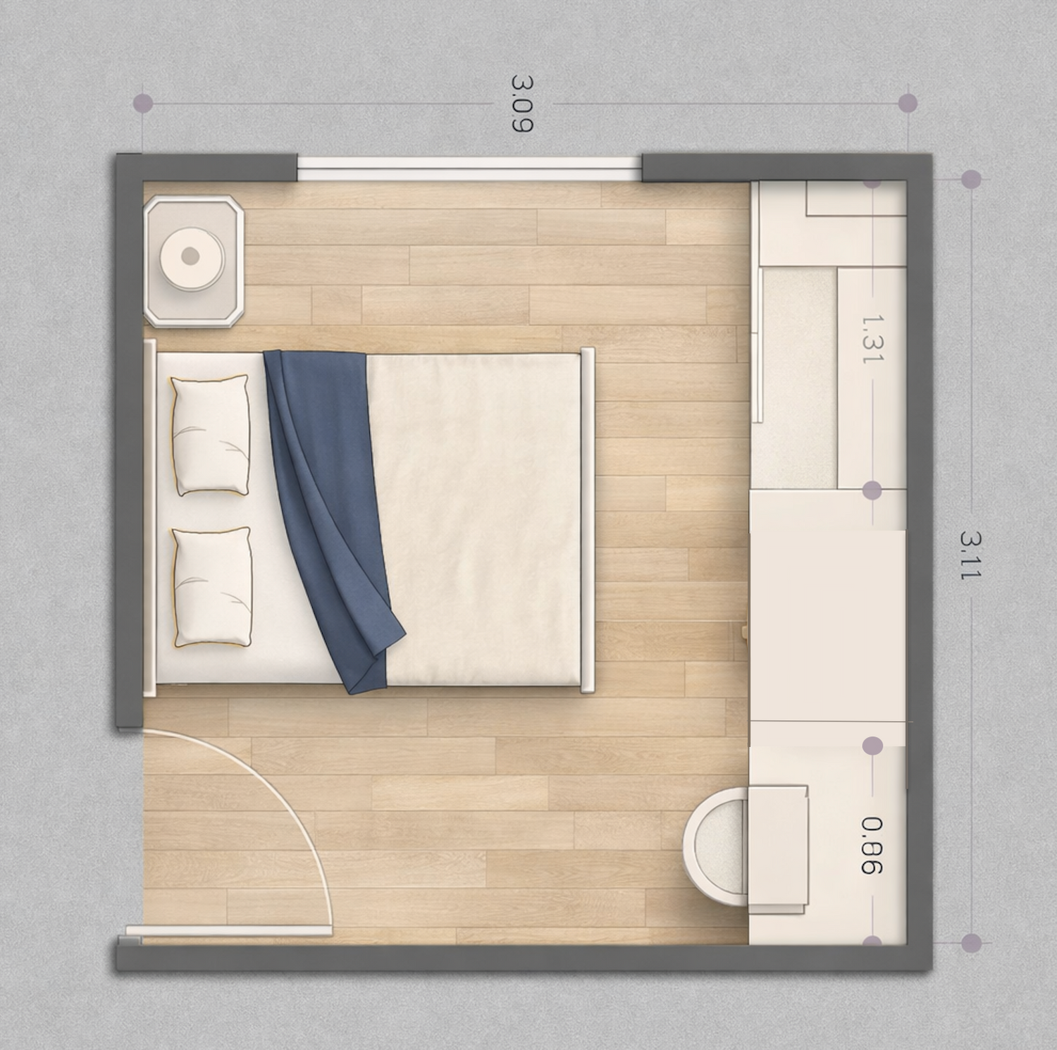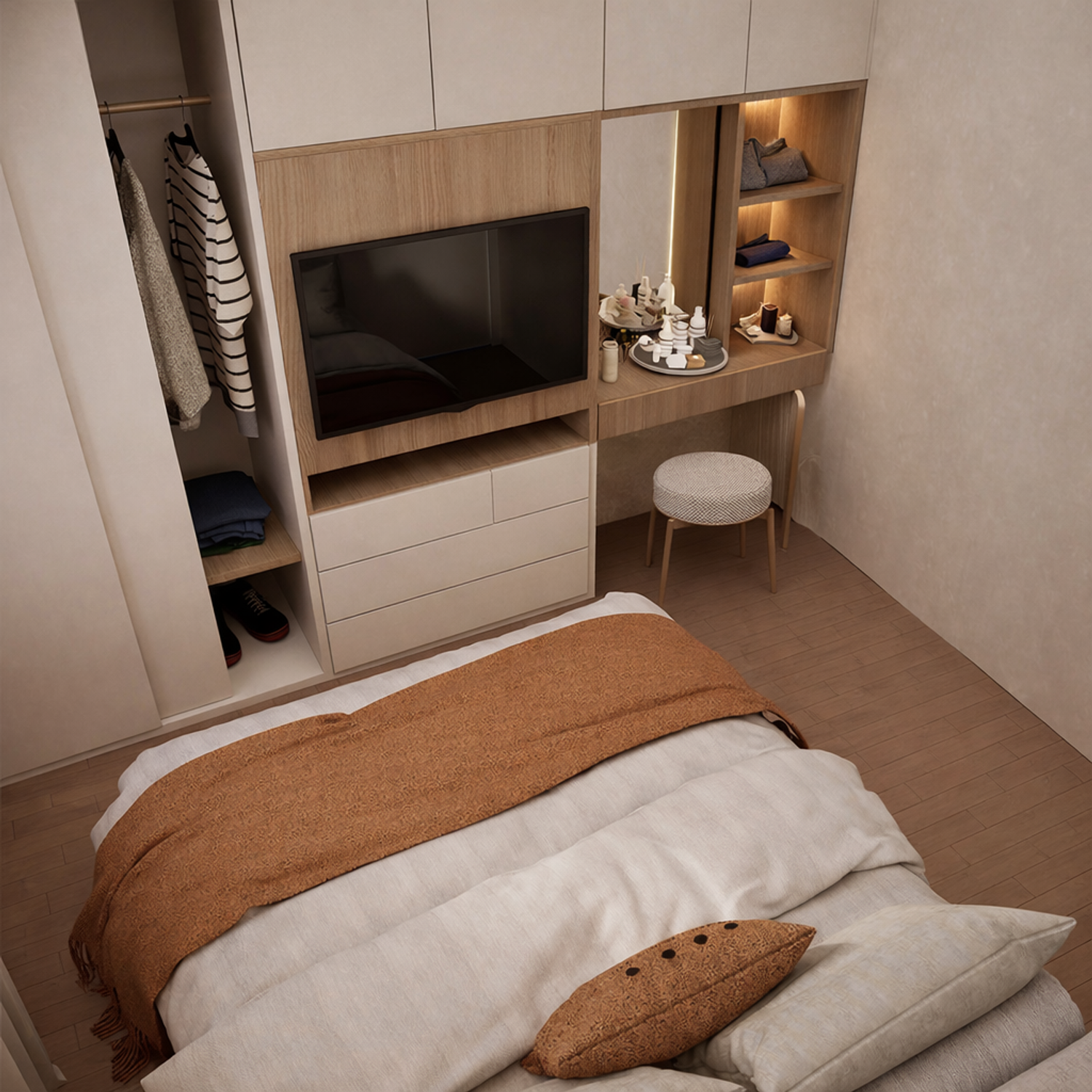 hope you enjoy it- I replaced the bed place to have more closet in your room.