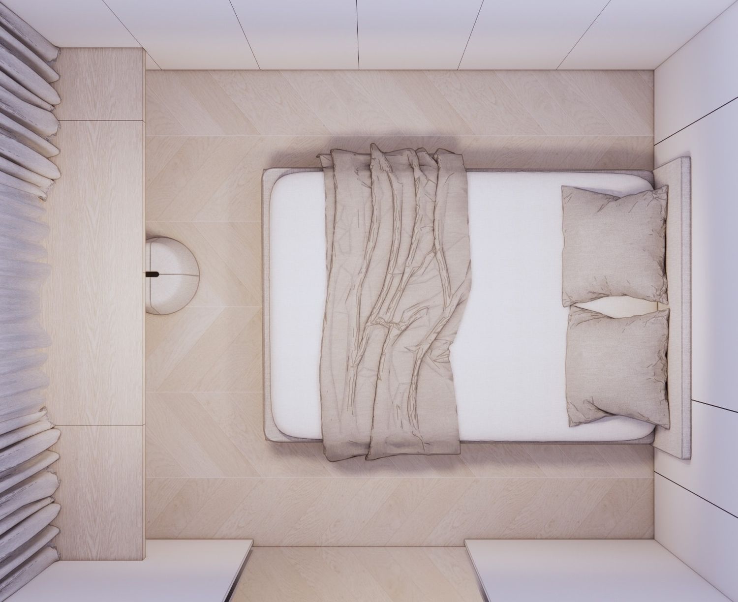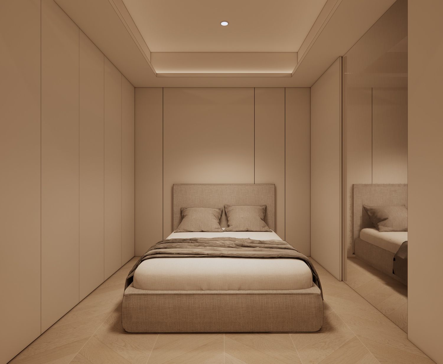 This bedroom design redefines contemporary minimalism through the philosophy of "The Art of Concealment." Designed to address the challenges of a compact footprint, the project creates a tranquil, clutter-free sanctuary without compromising modern functionality. The clean aesthetic is achieved through transformative and seamlessly camouflaged utility elements, elevating a passive resting area into a highly intelligent, multifunctional space.