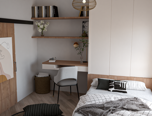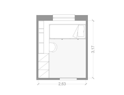 Hi, I need to review my daughter's bedroom. It is a very small room (9m2) and currently, due to its size, it is too full, leaving little space for livability. I need a project that makes it more spacious. It has a balcony that can possibly be transformed into a large window if you want to place the bed underneath to make the most of the space. Minimal style, according to the small size.