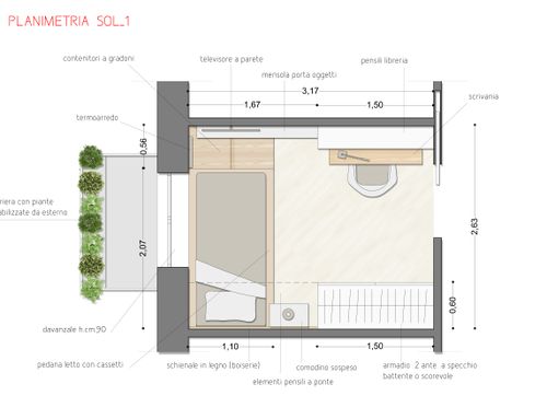 Salve, ho bisogno di rivedere la cameretta di mia figlia. E' una camera molto piccola (9m2) ed attualmente, per le sue dimensioni, è tropo piena lasciando poco spazio ala vivibilità. Avrei bisogno di un progetto che la renda più spaziosa. Ha un balcone che eventualmente può essere trasformato in un finestrone qualora ci si voglia posizionare il letto sotto per sfruttare al meglio lo spazio. Stile minimale, in accordo alle piccole dimensioni.