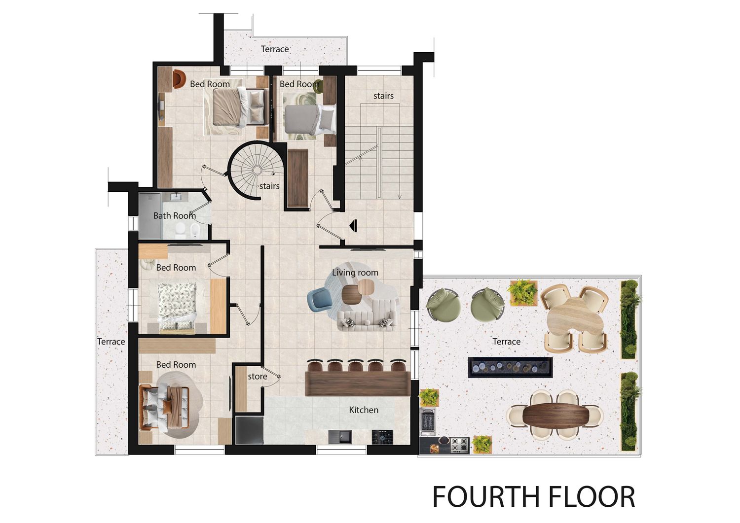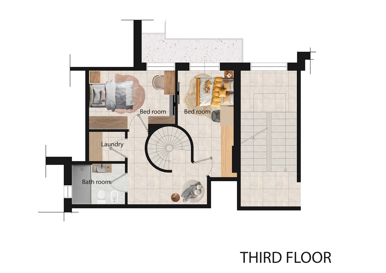 And to make the vision even clearer, we also provided a rendered plan version showing an example of the furniture layout, materials, and the overall mood of the spaces.