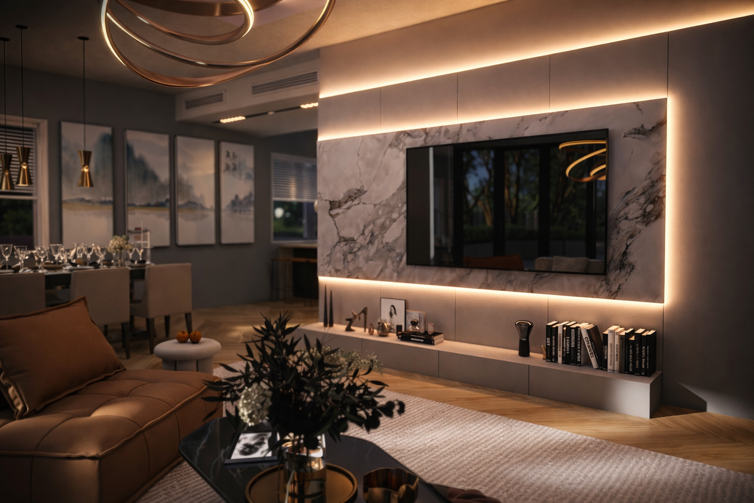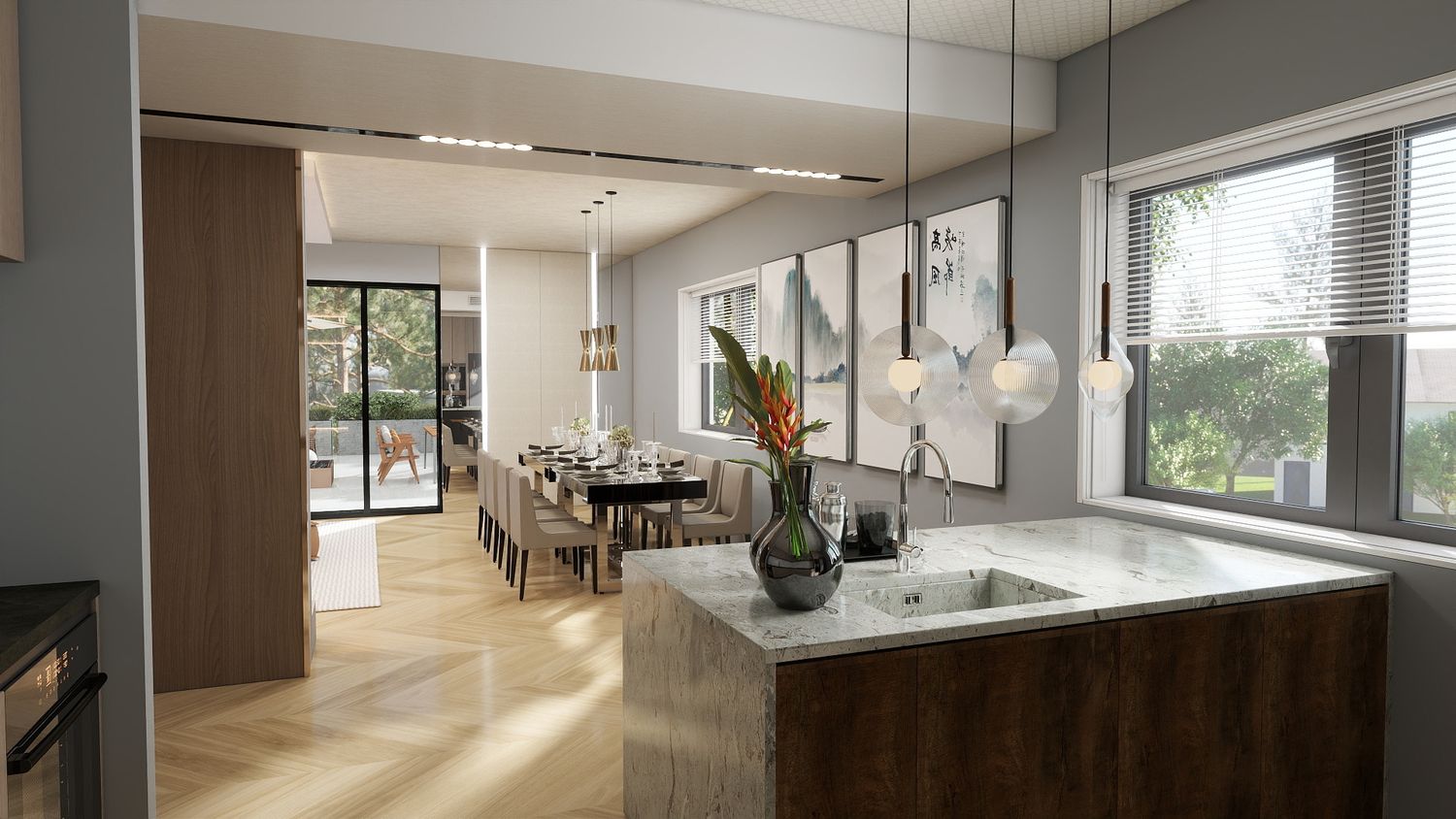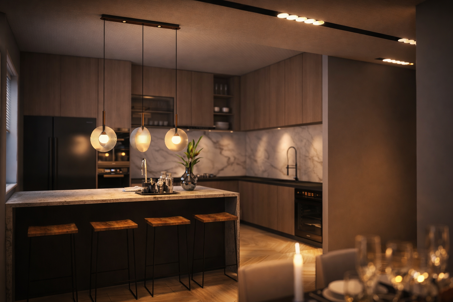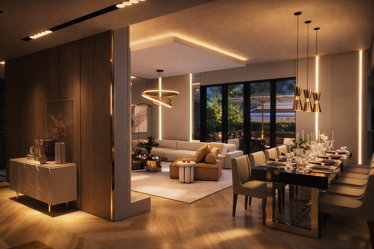 Il progetto propone una redistribuzione funzionale ed equilibrata dell’appartamento, mantenendo come elemento centrale la zona giorno open-space con soggiorno e cucina in diretto rapporto con il terrazzo, come richiesto.
