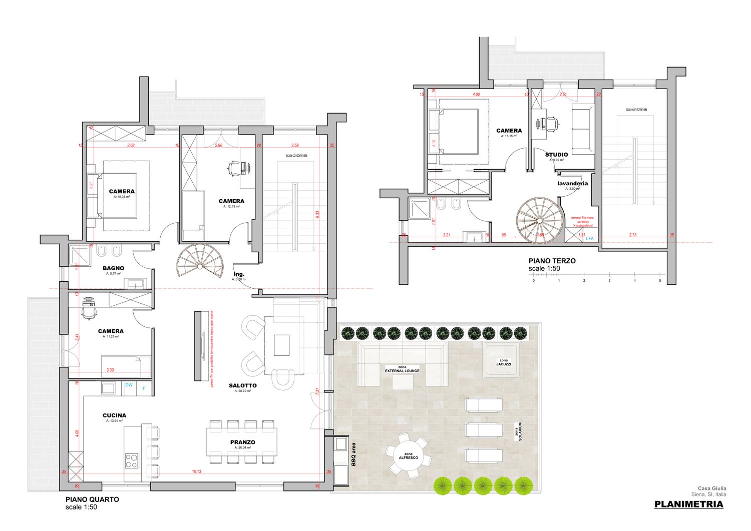 Il piano quarto si presta a diverse varianti di arredo e configurazione, offrendo flessibilità in base alle esigenze future, senza compromettere la qualità degli spazi principali.