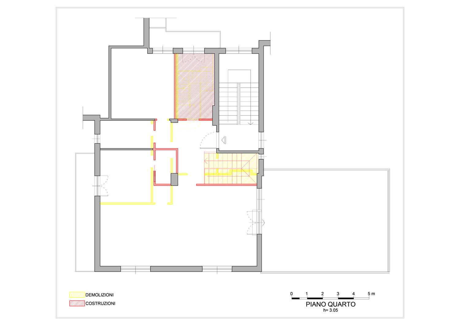 Il nostro progetto prevede una ristrutturazione con accorpamento delle unità abitative del terzo e quarto piano, configurate come segue: