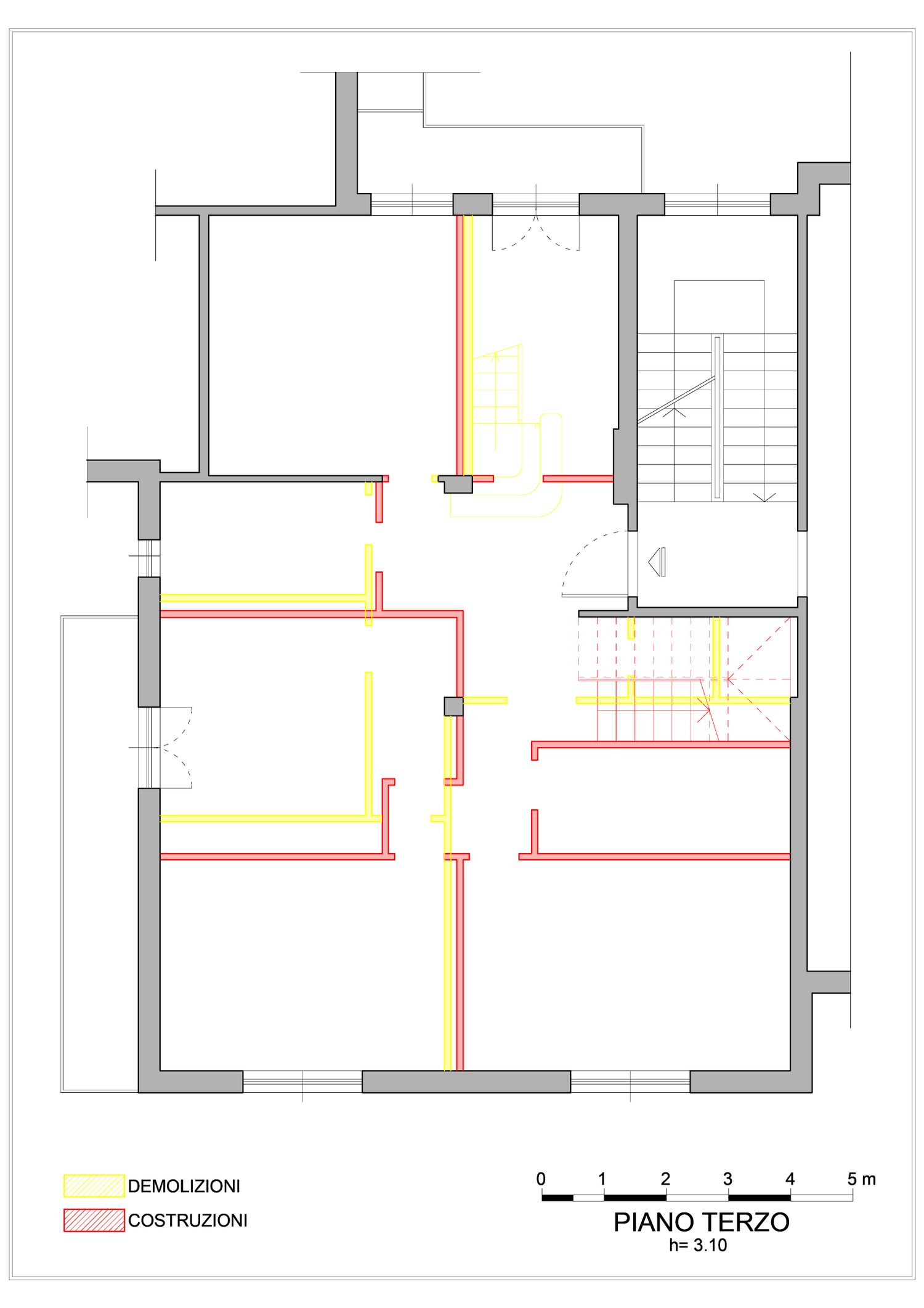 Le modifiche murarie ed impiantistiche saranno quelle necessarie per creare le stanze e le dotazioni richieste dal cliente, incluso lo spostamento della scala per permettere il recupero di una camera.