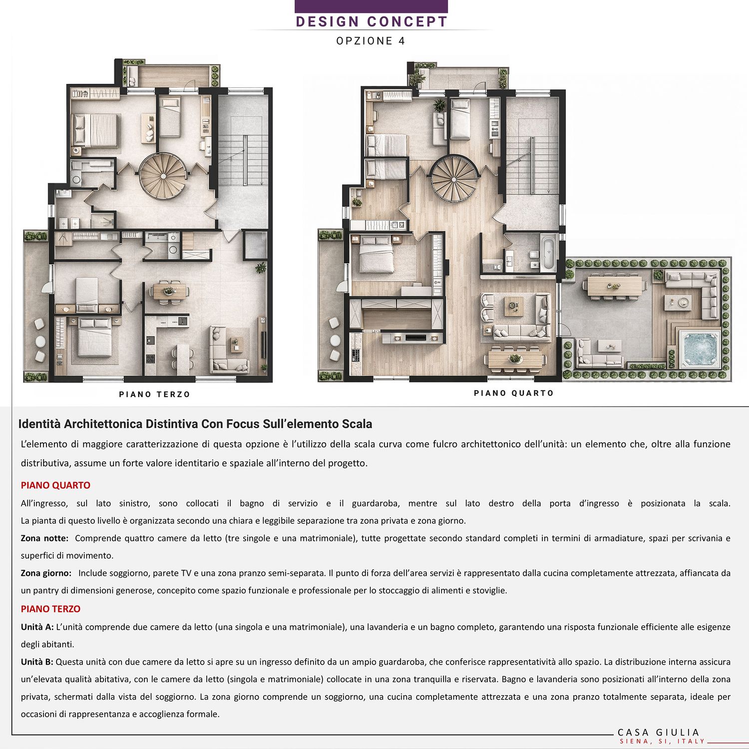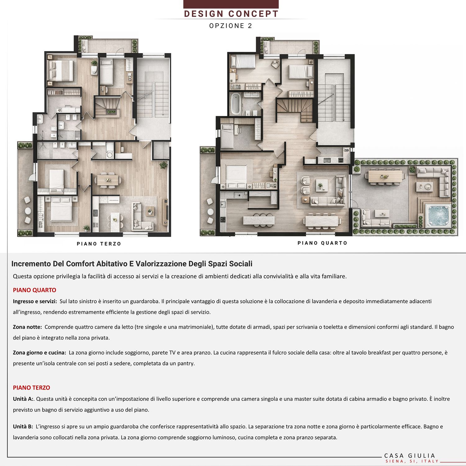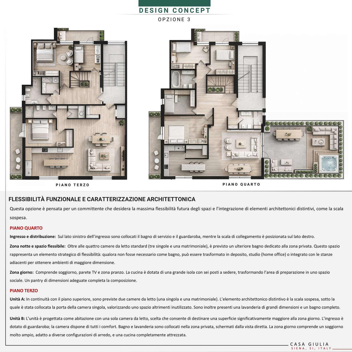 Ogni soluzione è spiegata nel dettaglio nelle tavole, con un focus sulla logica di distribuzione e sull'arredo.