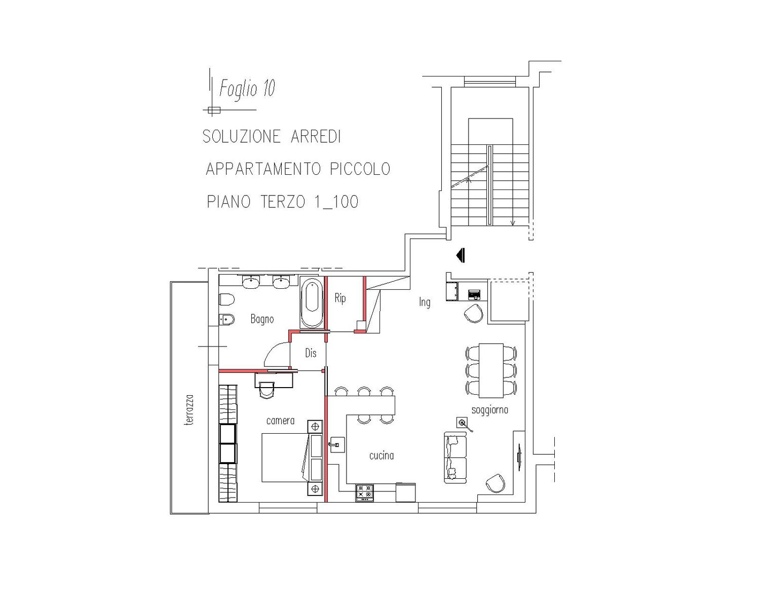 Oltre alle due proposte per l’appartamento grande, è stato sviluppato anche il progetto per l’appartamento più piccolo, affrontato con la stessa attenzione distributiva e progettuale, così da offrire una visione completa e coordinata dell’intervento complessivo. Tutte le richieste iniziali sono state rispettate e tradotte in soluzioni concrete, flessibili e pensate per migliorare la qualità dell’abitare.