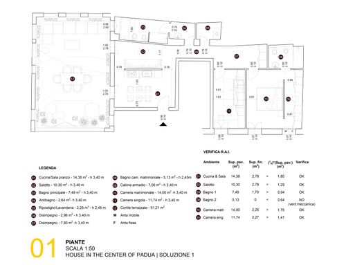 L'appartamento che si trova in un contesto urbano dovrà essere ristrutturato e arredato con un carattere moderno e minimalista che ben si inserisce in un contesto di immobile storico e parti comuni condominiali che richiamano un antico convento.
