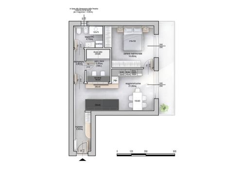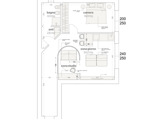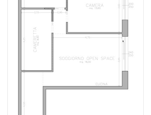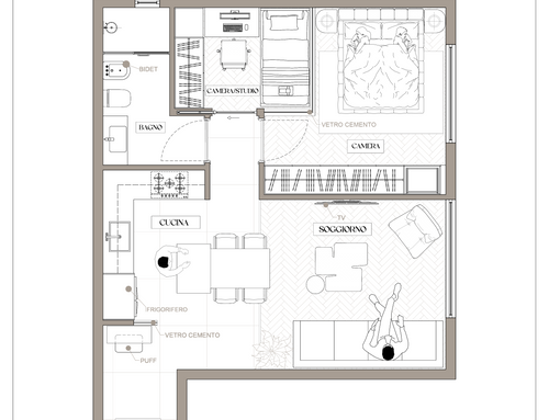 - prevedere stanza studio senza finestra ma con punto luce verso le altre stanze, con una dimensione che permetta un inserimento di un letto singolo