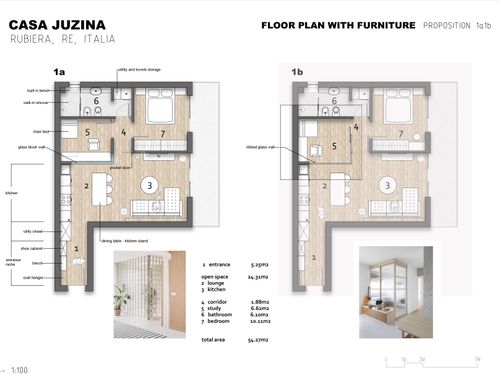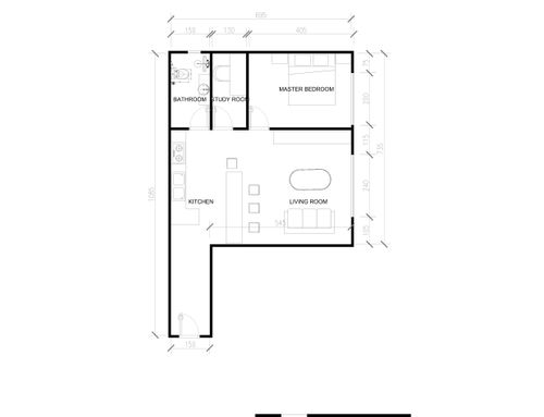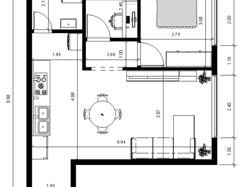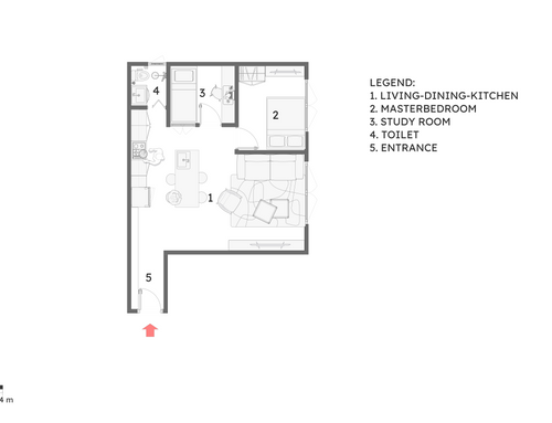 - Provide a study room without a window, but with a light opening towards the other rooms, sized to allow the placement of a single bed
