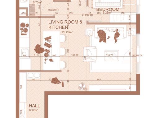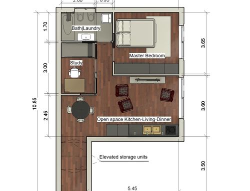 Free choice in the layout of the spaces, while respecting the following constraints: