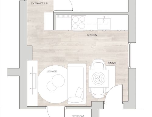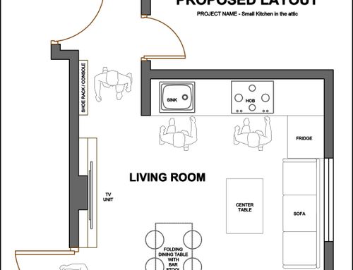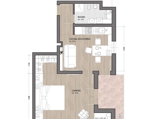 A clean, linear style, like Ikea, comfortable. In the apartment there is methane, but there is no element, foresee or pellet stove, or something else. I wish there was: normal fridge with freezer, not mini, normal gas stove, extendable table for 4 people, pantry for food and cookware. mobile container brooms, vacuum cleaner etc. + sofa and TV space. No dishwasher, no washing machine. a workbench would be a dream.