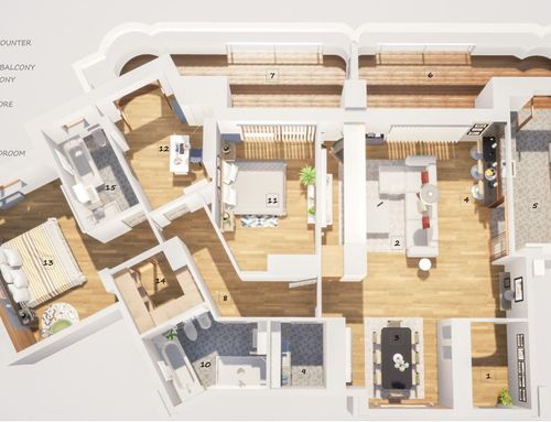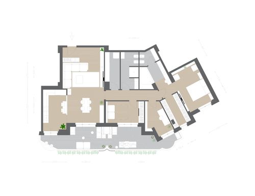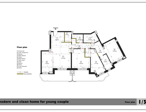 Estilo simple, casi minimalista, moderno pero no futurista. La casa debe ser funcional y limpia, con dos baños y un fregadero donde pueda colocar la lavadora, una bonita sala de estar donde pueda ver la televisión y recibir a los amigos en la mesa, que está cerca de la cocina. Las otras habitaciones deben ser dos habitaciones (una de las cuales es más grande, con una cama doble y vestidor) y un estudio que eventualmente puede convertirse en una habitación si la familia se expande
