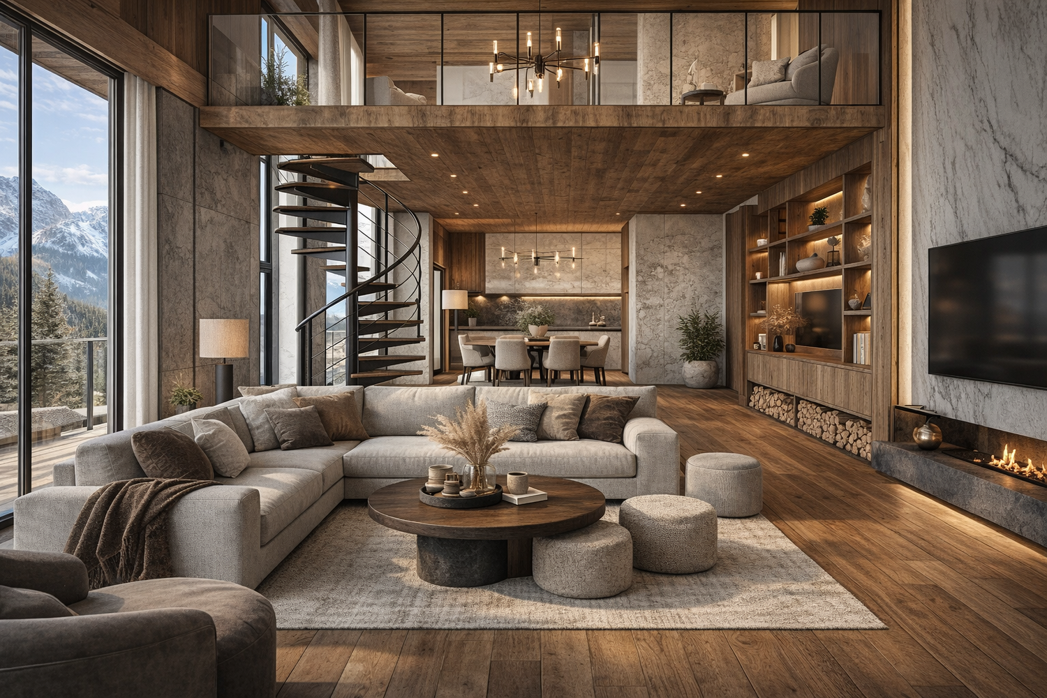 Il progetto nasce con l'obiettivo di creare un ambiente contemporaneo che dialoghi con il contesto naturale della casa di montagna. L'intervento combina materiali caldi e naturali come legno e pietra con elementi moderni e linee pulite, generando uno spazio accogliente, elegante e funzionale.