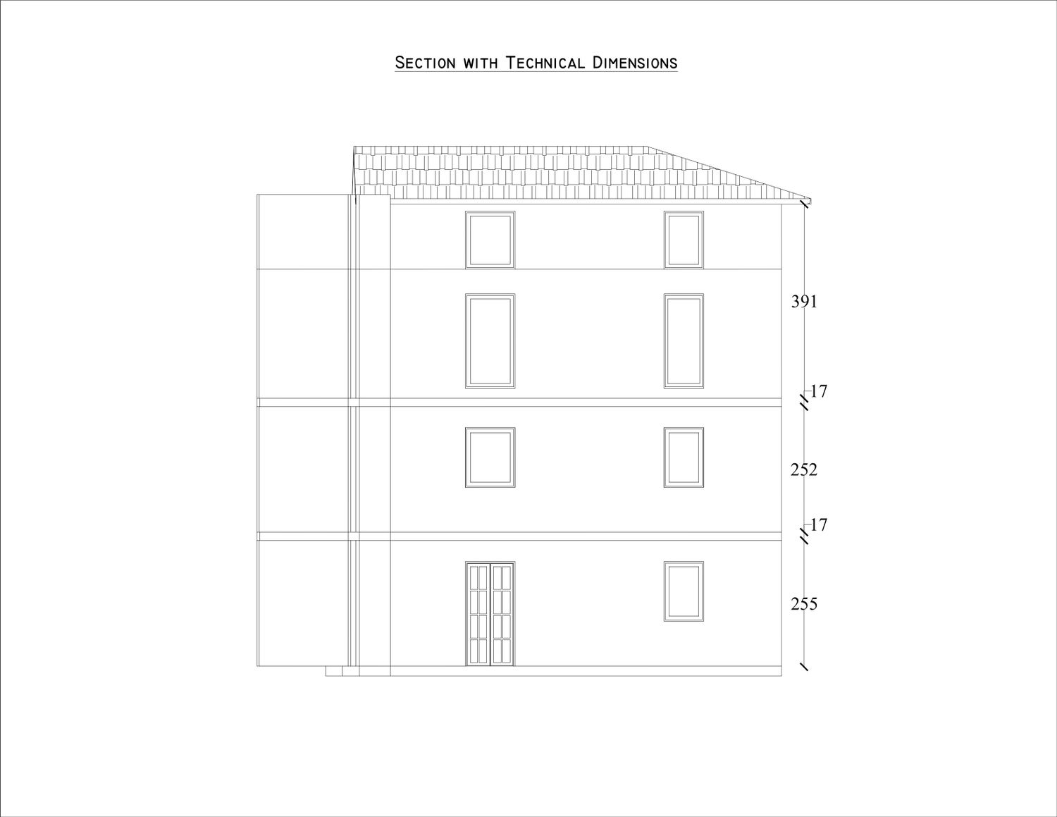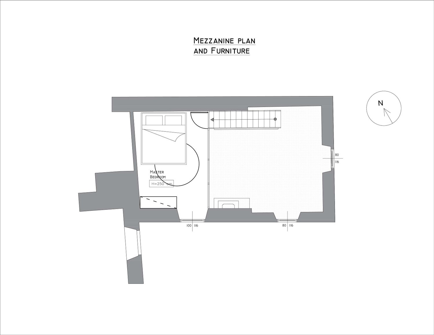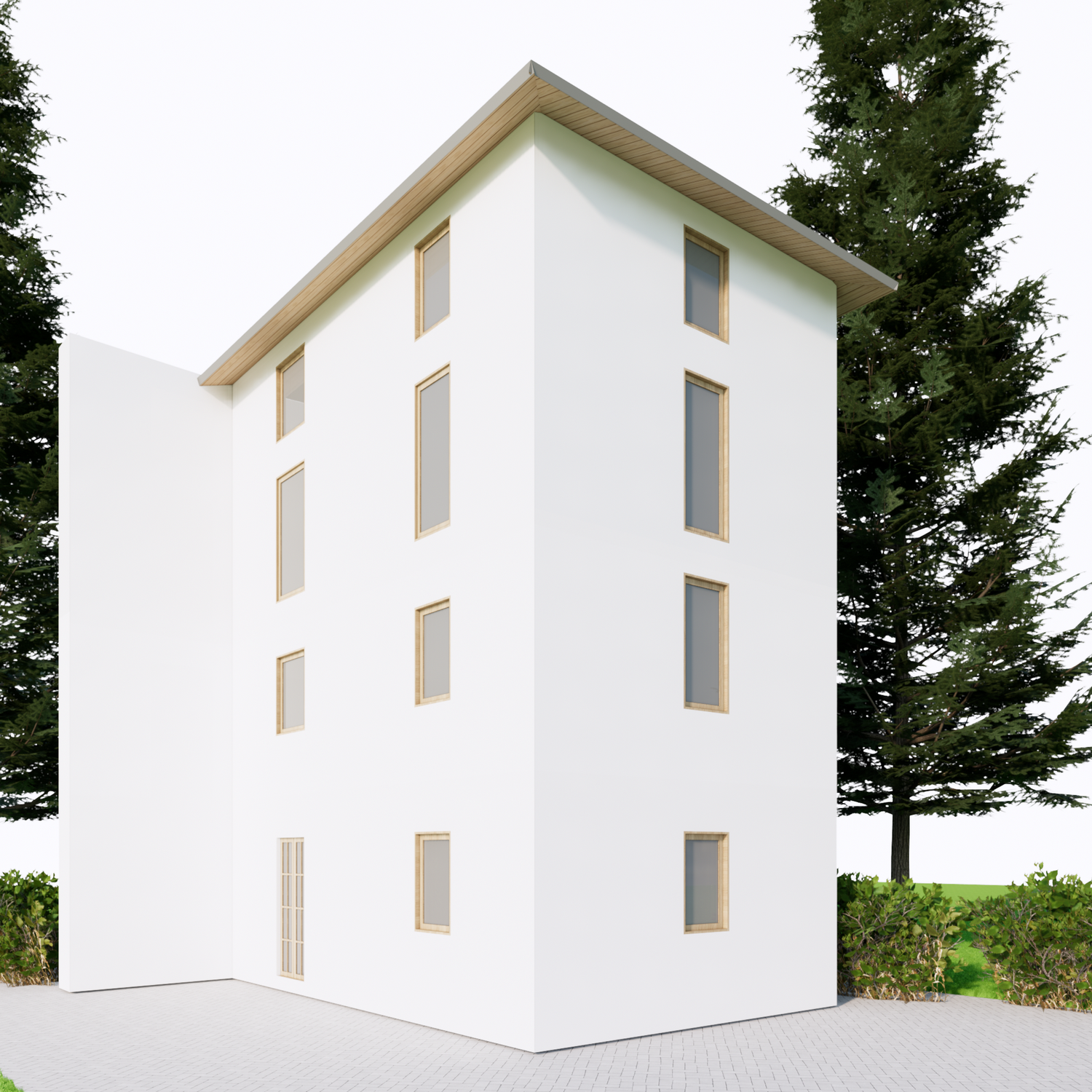 I demolished the attic floor, making the second floor double-height. The center wall on the first and second floors was also completely removed, but I kept the center wall on the ground floor.