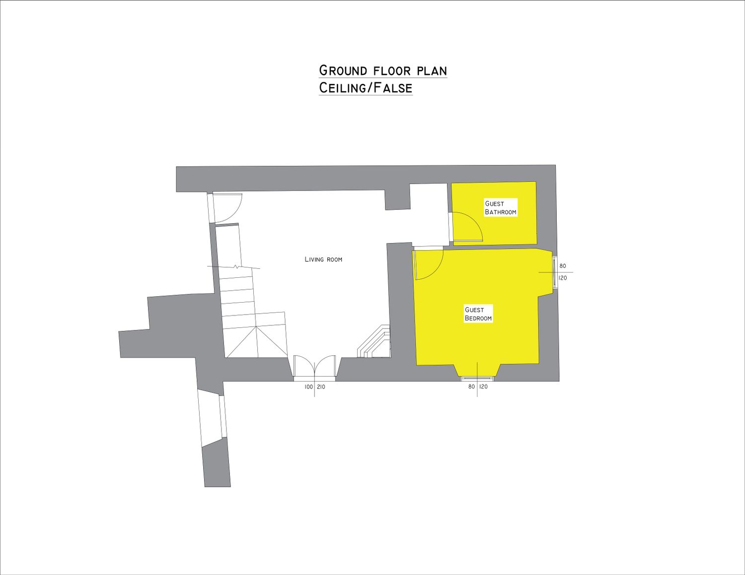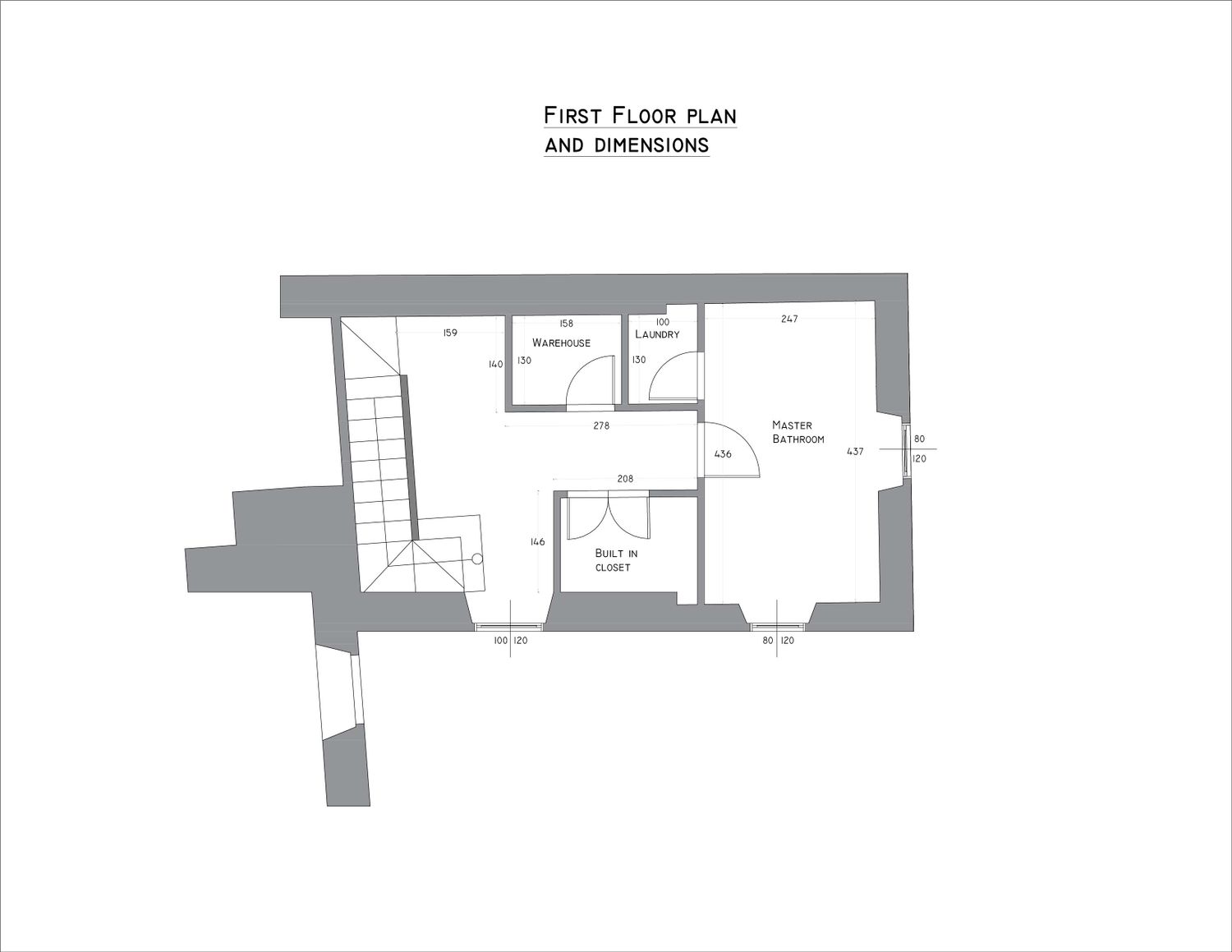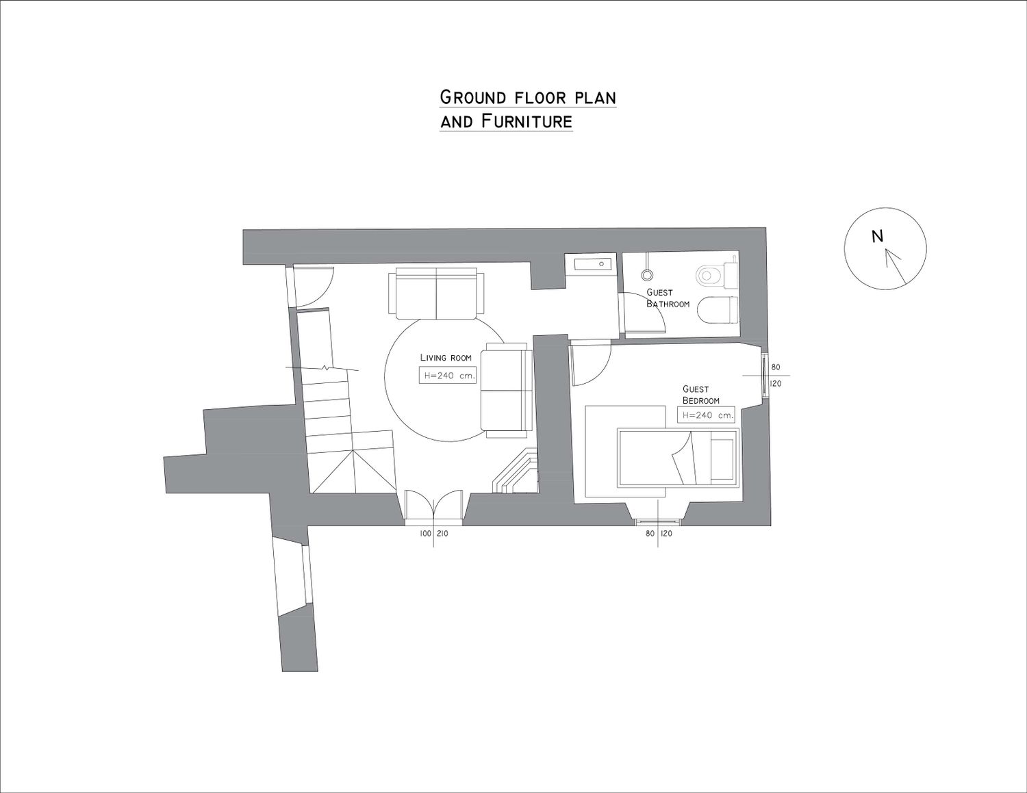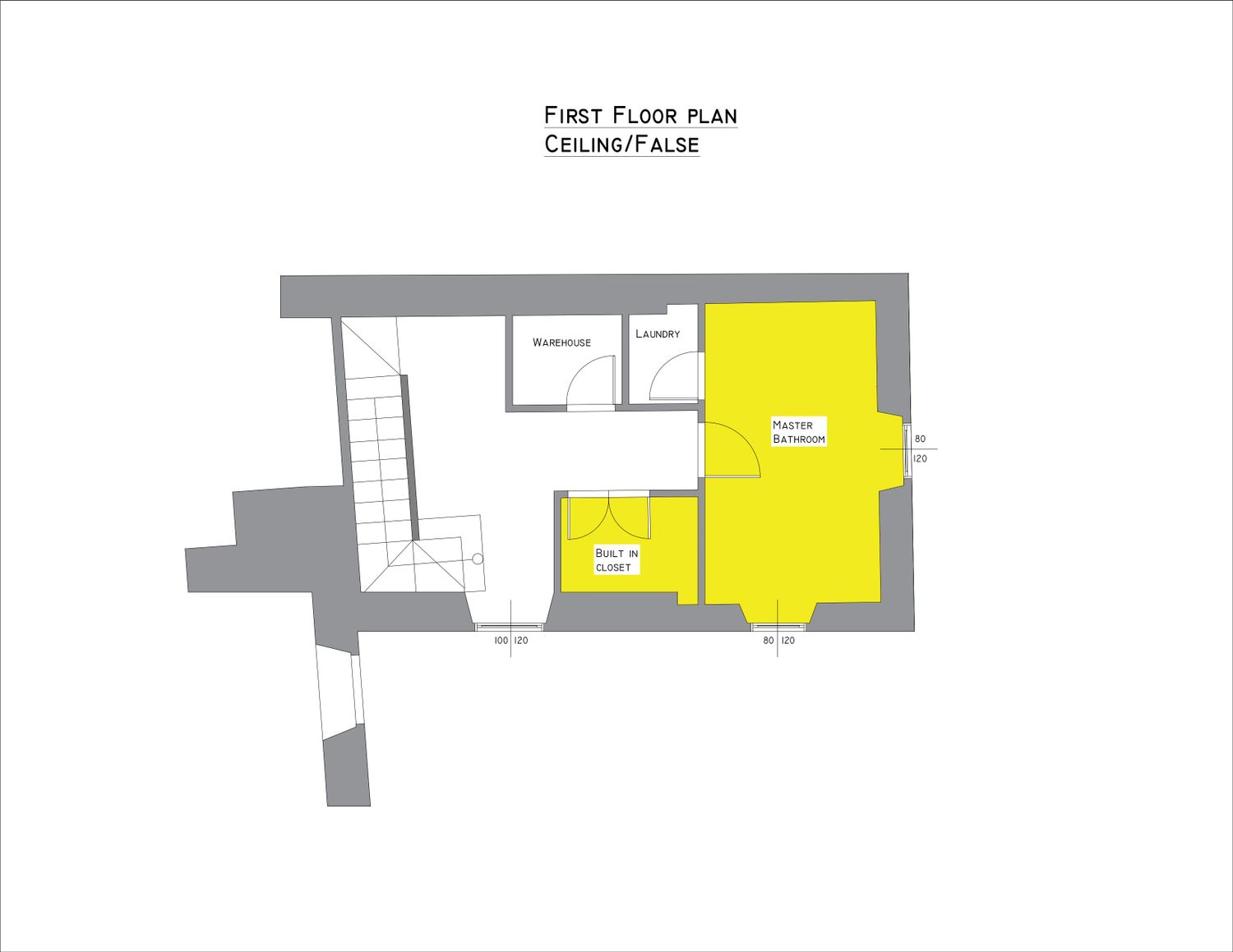 I demolished the attic floor, making the second floor double-height. The center wall on the first and second floors was also completely removed, but I kept the center wall on the ground floor.