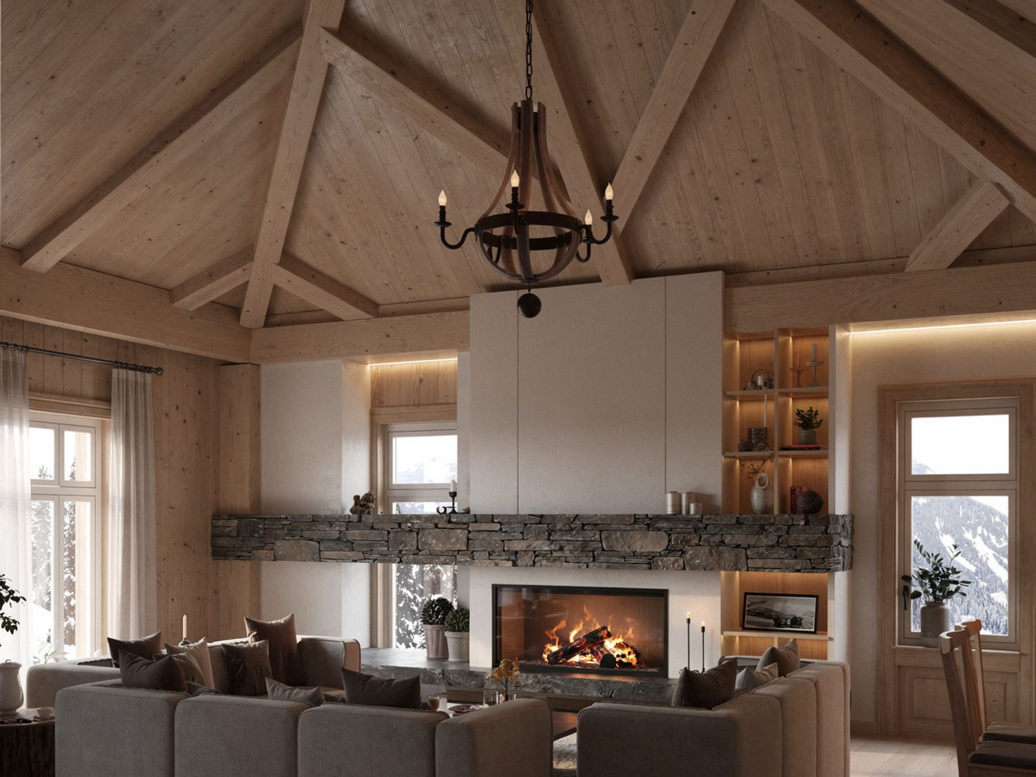 Materials and architectural solutions are inspired by the local mountain language, interpreted with refined finishes and a strong emphasis on light, spatial quality, comfort, and the identity of the place.
