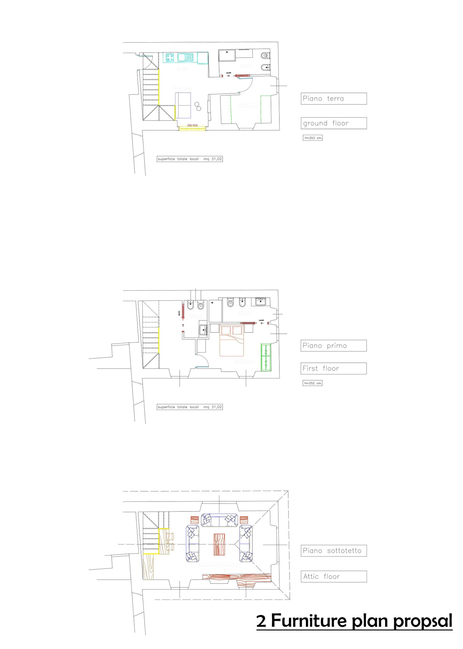 Questo consente la creazione di un ulteriore bagno al primo piano, dedicato alla zona giorno principale nella mansarda all'ultimo piano.