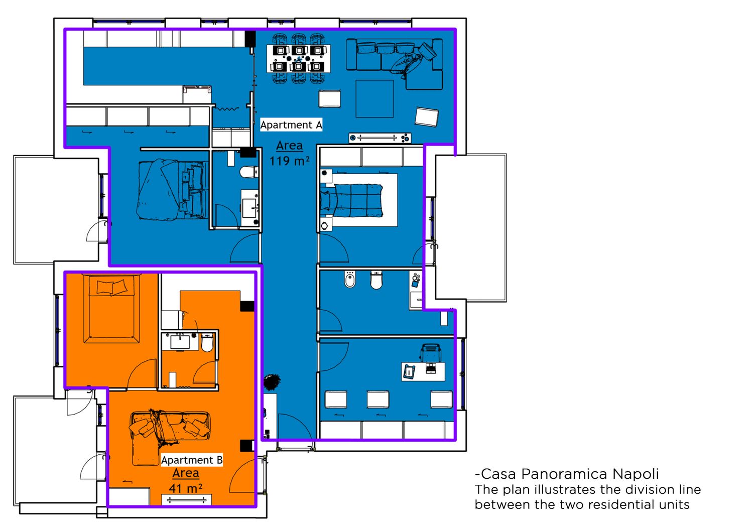 With a total built area of approximately 160 square meters, the project was divided into two distinct sections: a 120 sqm unit for the family and a 40 sqm unit designed for temporary stay or rental purposes.