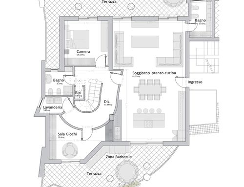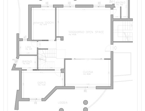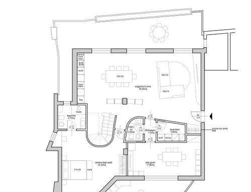 - un bagnetto per gli ospiti con solo lavandino e water (pensavo potesse essere messo nella nicchia dove oggi c'è il retro cucina).