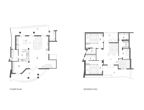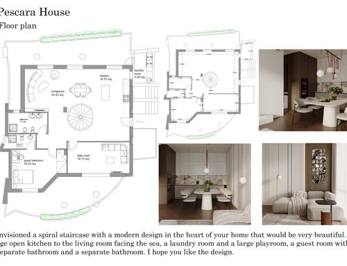 The side where the kitchen and dining nook are currently located faces the sea, therefore I would like this area to host the dining room and the living room.