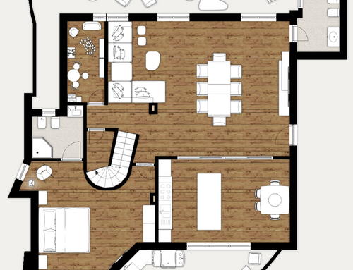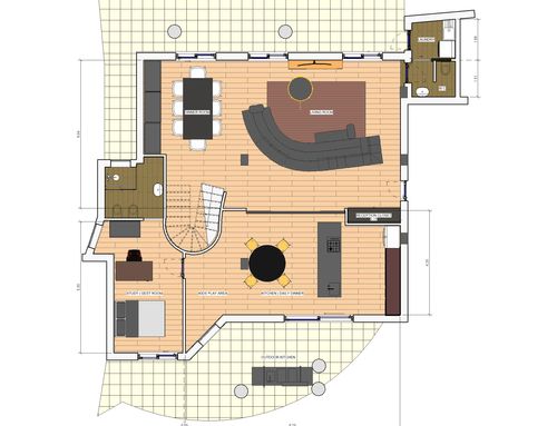 - a guest WC with only a washbasin and toilet (I was thinking it could be placed in the niche where the back kitchen area is currently located).