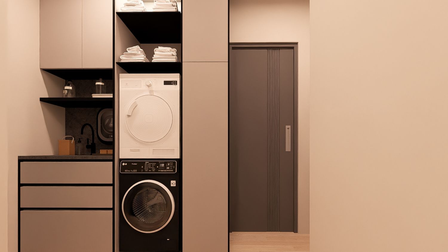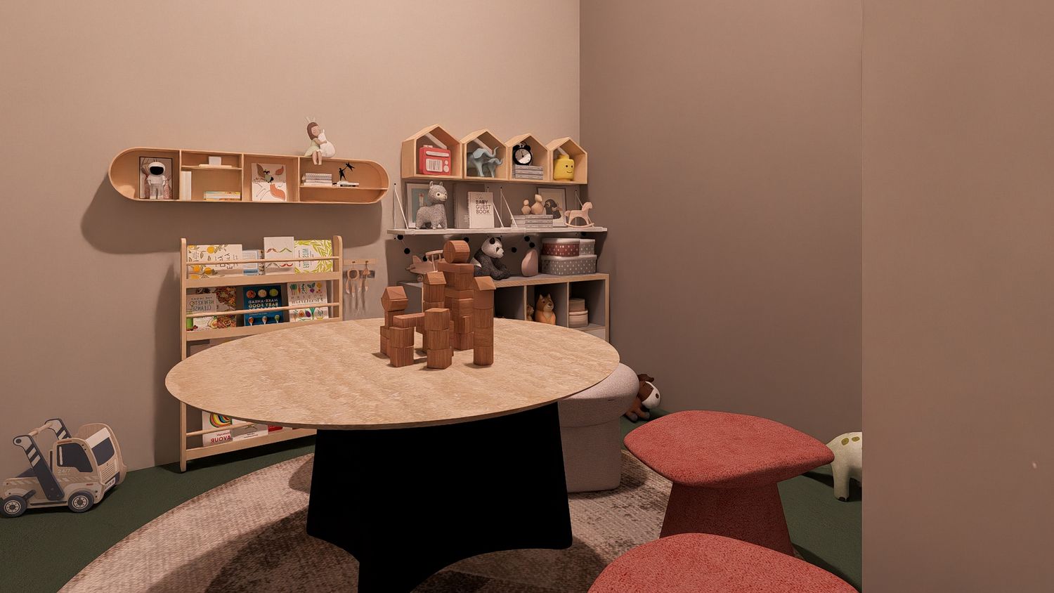 Gli spazi di servizio (lavanderia, WC ospiti e camera ospiti con bagno en-suite) sono stati concentrati in una zona più interna, migliorando la privacy e la chiarezza distributiva. La playroom è stata concepita come ambiente chiuso e flessibile, senza obblighi di illuminazione naturale, come concordato.