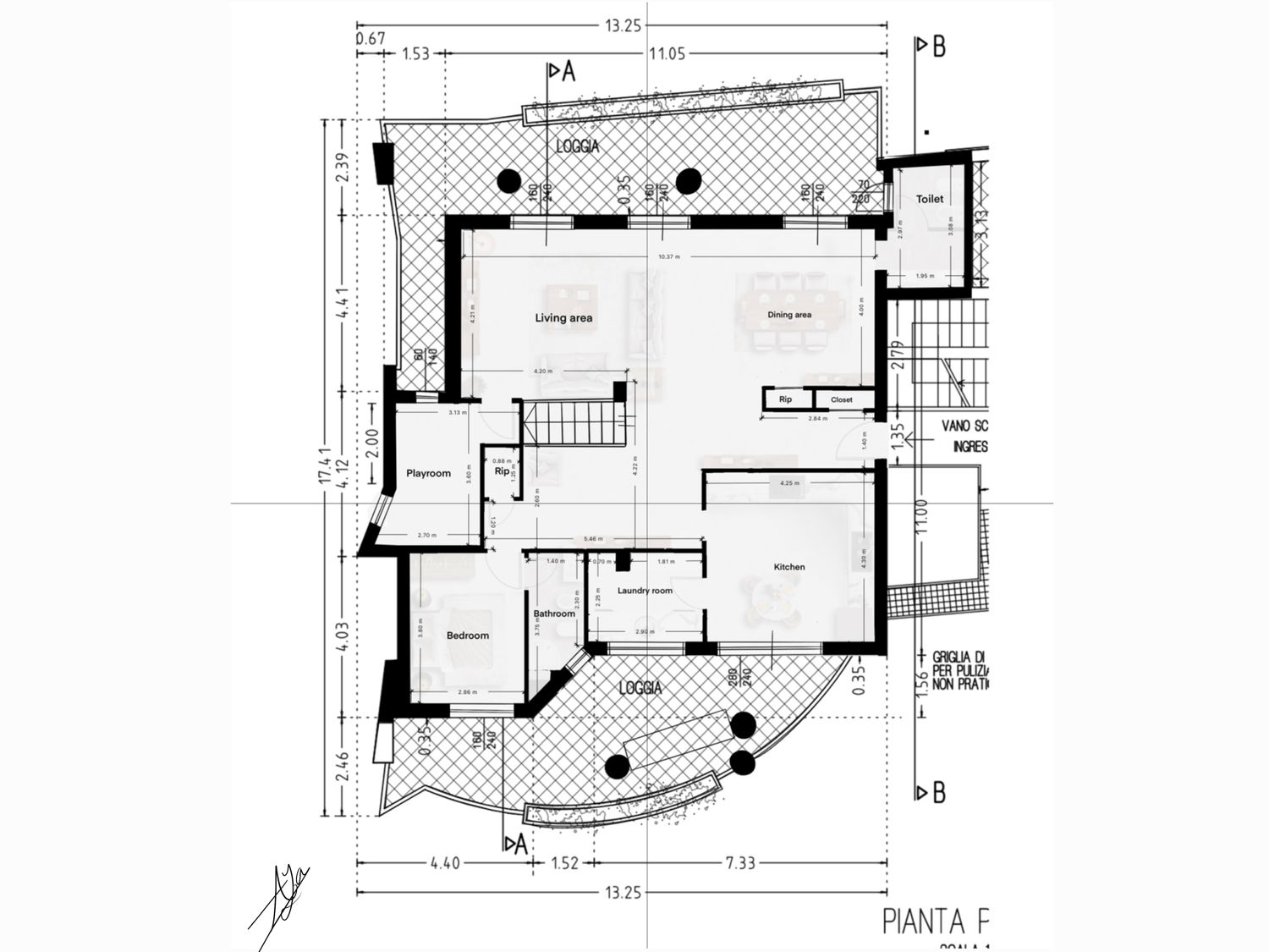 The laundry area was carefully designed to meet all functional needs, featuring a washing machine, dryer, and a laundry sink overlooking a terrace window, along with ample storage space for cleaning supplies organized in a practical manner.