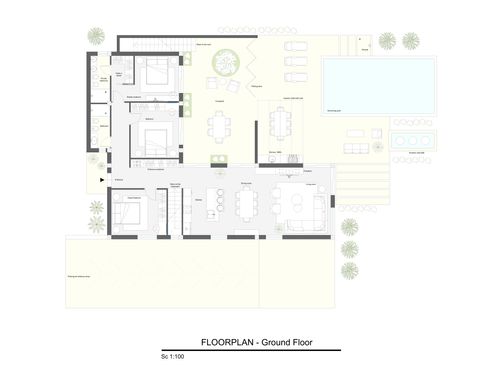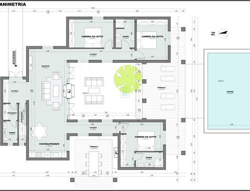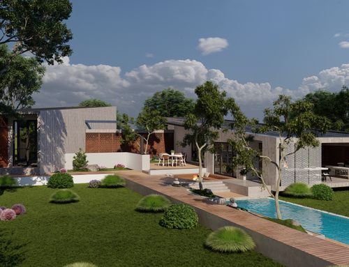 Mi piacerebbe avere una villa da 3 camere da letto e piscina. Una villa con un ampio open-space, cucina aperta. Mi piacerebbe con una corte interna collegata alla zona piscina, ampie vetrate, luce,ma anche privacy. Inoltre mi piacerebbe avere una terrazza coperta (pergola) ad Ovest collegata alla zona living dove poter cenare con gli amici mentre tramonta il sole, con una cucina esterna, ma va bene anche in BBQ con forno. Mi piace lo stile mediterraneo, elegante, con un po' di modernità, ma non una scatola minimalista. L'accesso alla casa non deve avvenire direttamente in un soggiorno/ living space, ma vorrei un ingresso ed una stanza laterale dove lasciare scarpe, giacche, borse etc