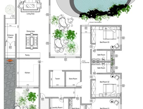 I leave room for the creativity of the architects to create the other house areas (sleeping area, bathrooms etc).