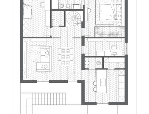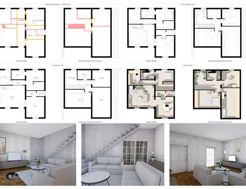 • In the sleeping area (or in part of the hallway) I would like to plan the insertion of an important, scenographic staircase, which leads to the attic that is not habitable but still to be enhanced.