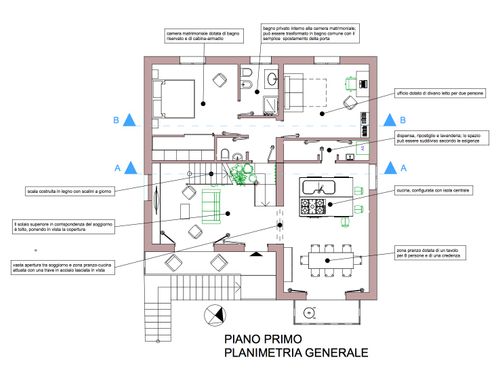 • La cucina dovrebbe essere sul lato opposto rispetto al soggiorno (o invertiti tra loro, se tecnicamente e visivamente funzionale).