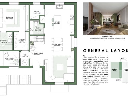 • The kitchen should be on the opposite side to the living room (or inverted, if technically and visually functional).