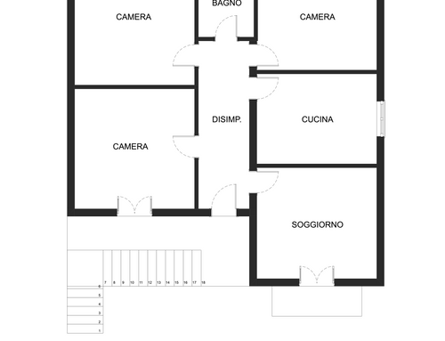 • Il punto più alto dove poter inserire questa scala si trova tra l’attuale bagno da 4,08 mq e il centro del disimpegno.
