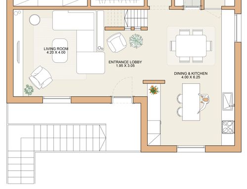 • Other possible positions are also considered (e.g. in the corner or to the side), as long as the staircase is clearly visible and contributes to the general aesthetic.