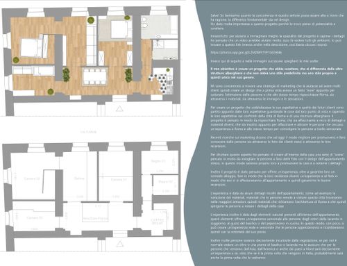 Più in dettaglio, è richiesto uno stile di arredamento che sia moderno, che metta in risalto la luminosità degli ambienti e che presenti un richiamo (per esempio un quadro) alla città di Roma. Per quel poco che ho potuto apprendere navigando su internet, esistono molteplici stili di arredamento moderni (industrial, contemporaneo, classico moderno e molti altri). Non avendo una preferenza, è mia intenzione lasciare un ampio margine di discrezionalità all'architetto nella scelta dello stile che più ritiene adeguato.