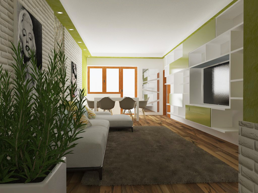 Appartamento di 95 mq al 6 piano di un palazzo, degli anni 60, in cortina situato di fronte ad una villa comunale a Roma. L’appartamento è suddiviso in ingresso, salone + balcone medio, corridoio, 2 camere da letto + 1 balcone medio+ 1 balcone piccolo, cucina e bagno. Ci sono colonne portanti nel salone, camere da letto, e colonna con gli scarichi delle acque in bagno ( dove si trova il lavandino).Vorrei una casa moderna ma non troppo, luminosa, accogliente, un secondo bagno, togliere i soppalchi e l’armadio a muro, infine una cucina spaziosa dove mangiare.