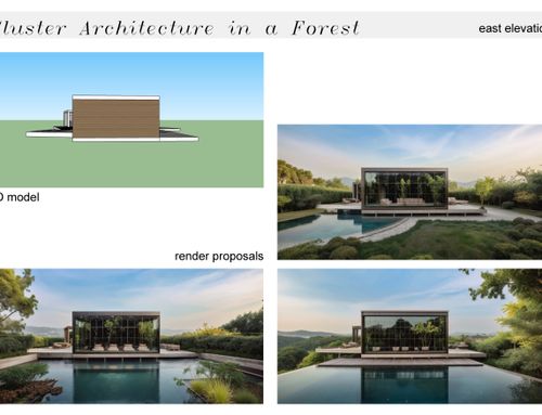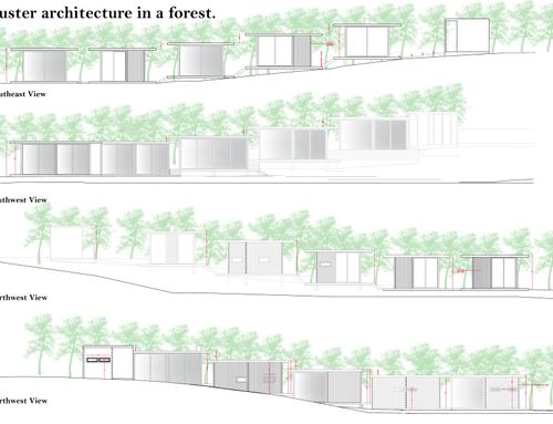 El terreno se encuentra en una pequeña colina en medio de un bosque. Debido a la normativa especial de construcción, nos interesa ver cómo se podría hacer realidad nuestro deseo mediante la arquitectura de clústeres.