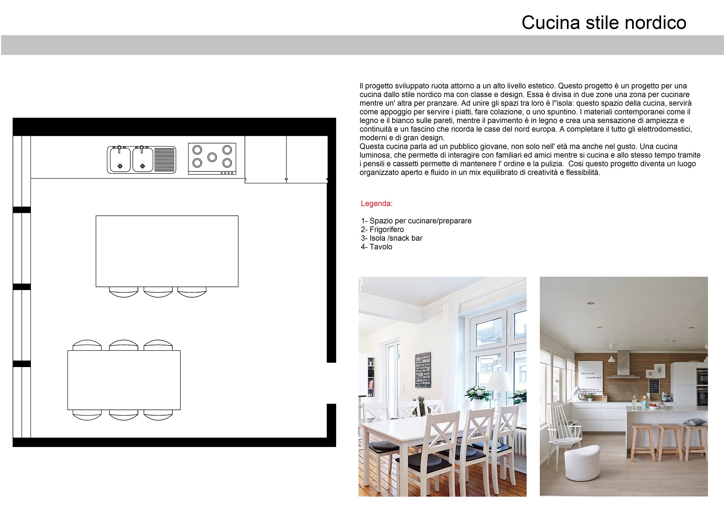 - cucina dal design contemporaneo, stile nordico, spazi minimali ma confortevoli. Non deve essere vintage, né shabby.