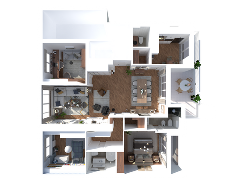 In general, we need large spaces for wardrobes. The presence of large passage spaces in all areas of the house is essential (with the possible exception of the second bathroom). When choosing the furniture, you will have to focus not only on the aesthetic aspect, but also on the practicality and ease of use (for example, there must be no stools or high chairs). As for colors, we love neutral/light shades but would like to include pops of color. We would like to change the door handles, it would be appreciated to have a detail on the handles that can be used for the various doors depending on whether they are swinging or sliding. Additionally, we would like to change the inside panel of the front door.